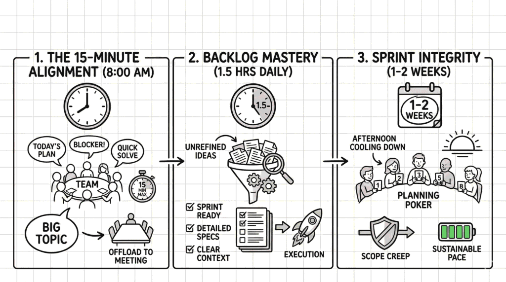 - The 15-Minute Alignment : My approach to Agile is not about following a rigid process, but about adapting it to the team’s DNA.